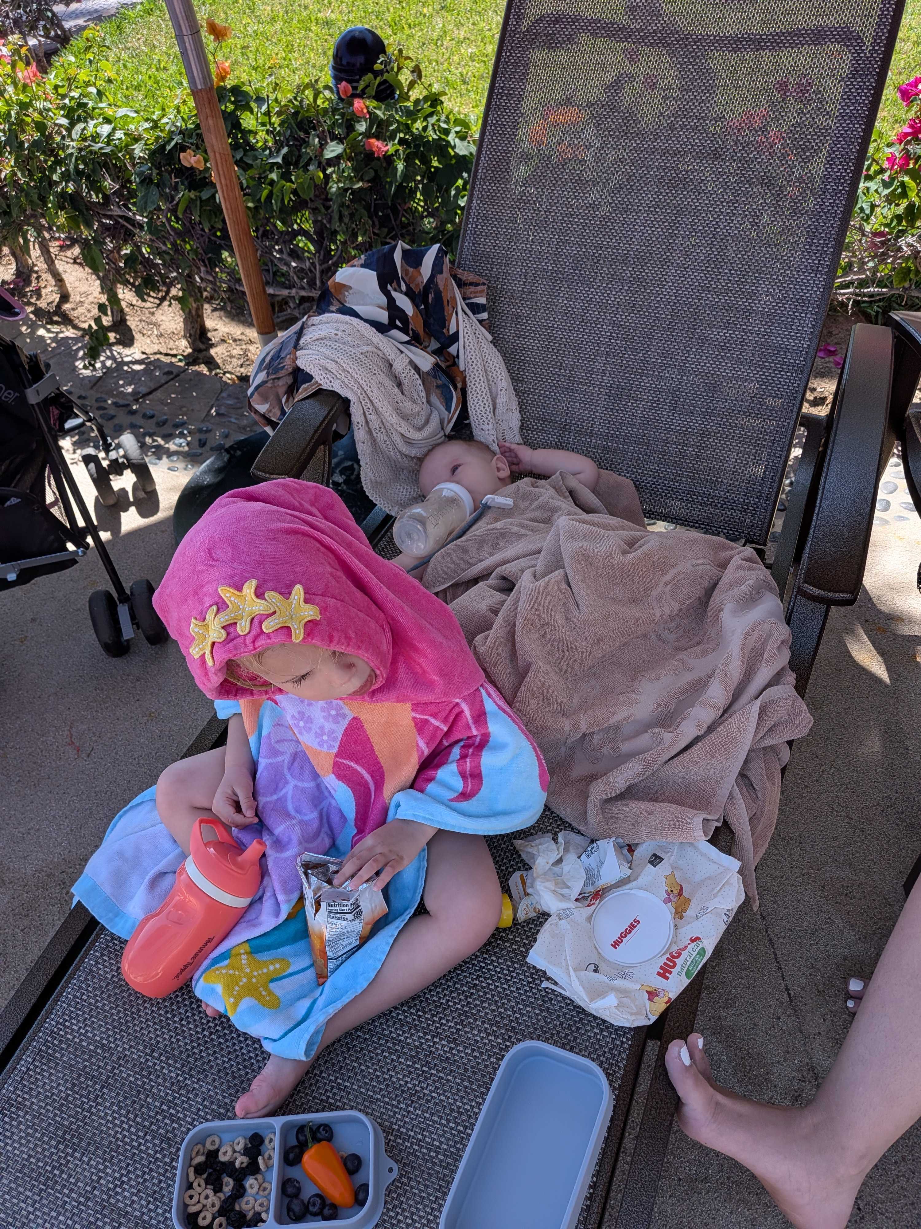 Honestly one of those "do I really need this" things, but this was so practical with a toddler. It stays on, they can actually walk in it without tripping, and it made the transition out of the pool way easier. More than once we just changed the swim diaper, threw on the poncho, handed over a snack, and walked back to the room like that.